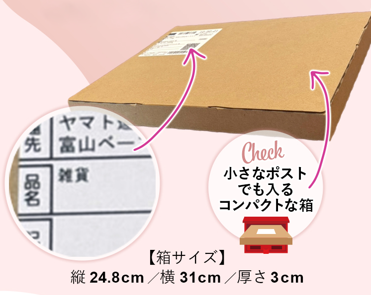 キットはコンパクトな無地箱で「雑貨」として届けられるため、家族と同居している方でも中身を知られにくい仕様になっています。