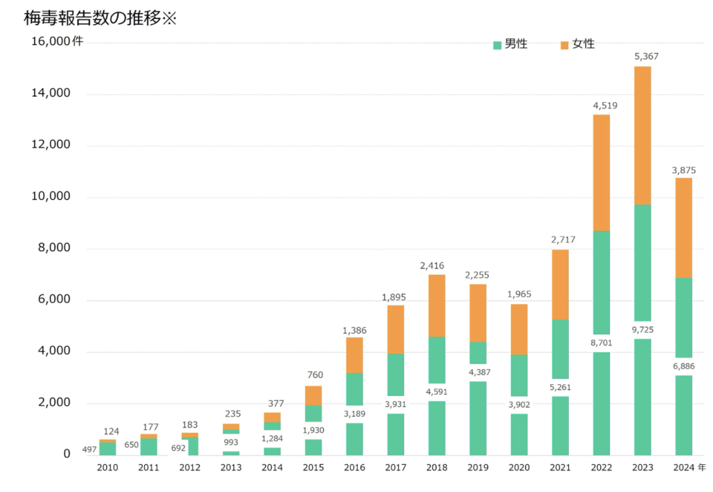 - 梅毒の感染者数はここ数年で急増