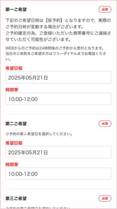 1、来院予定日を申し込み日から1日後以降に指定