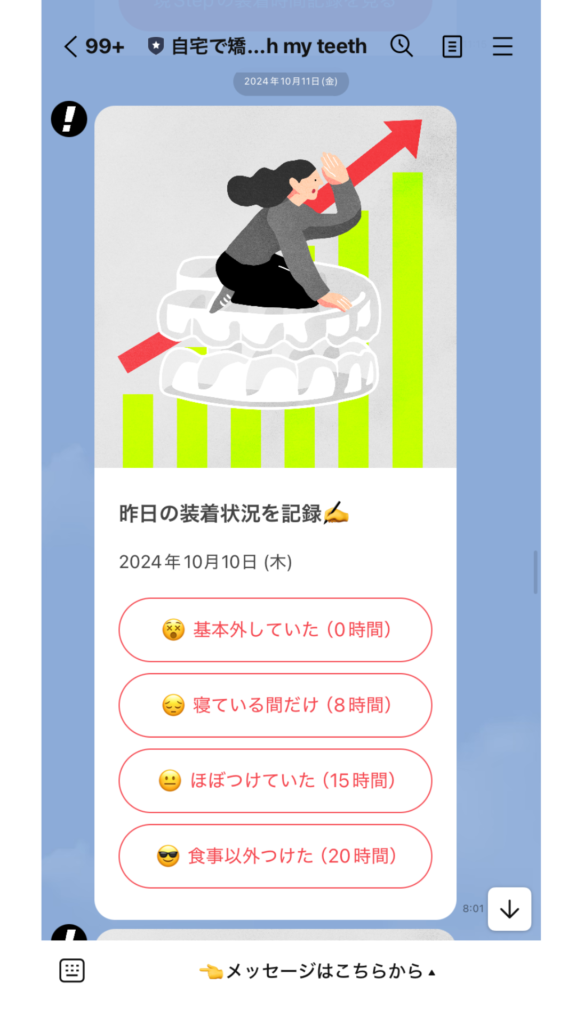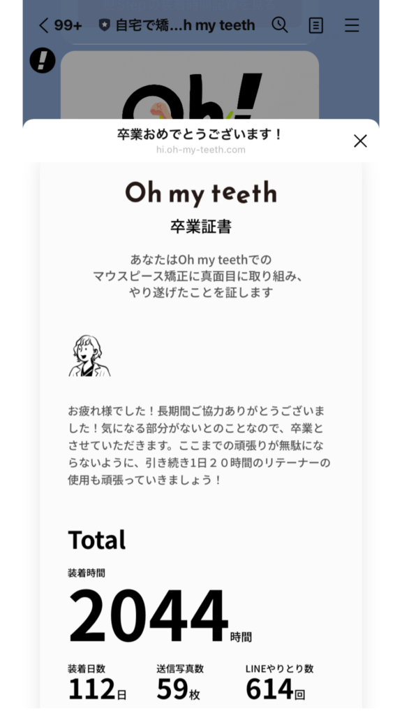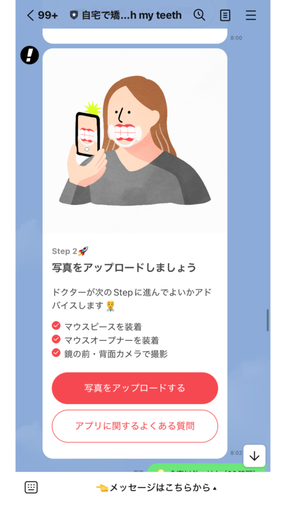 Oh my teethでは、経過観察や質問などのサポートをLINEで受けられます。