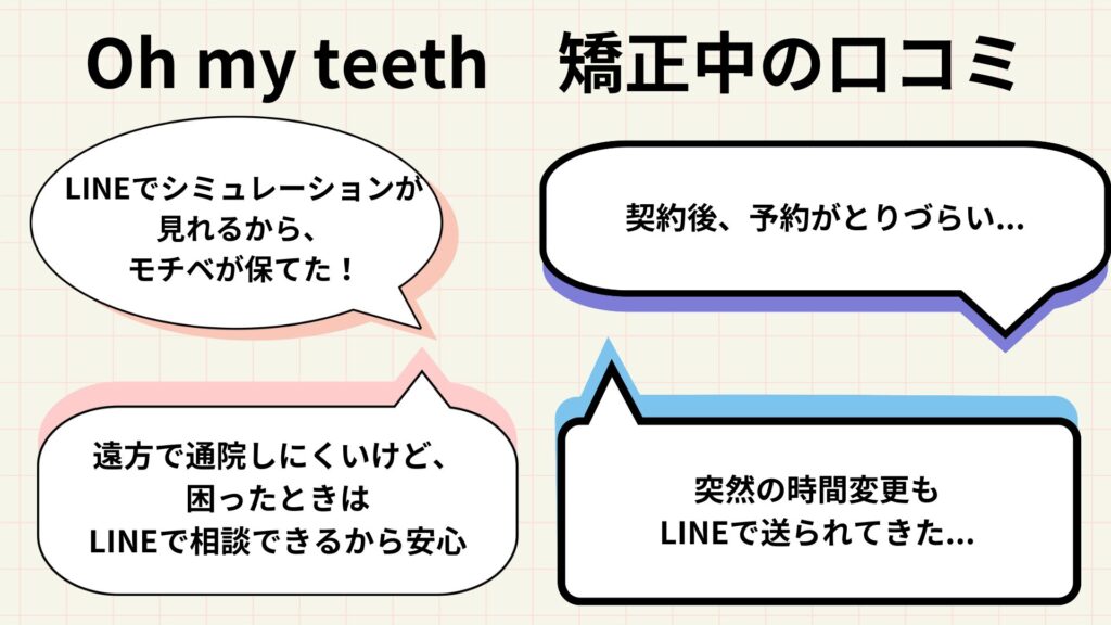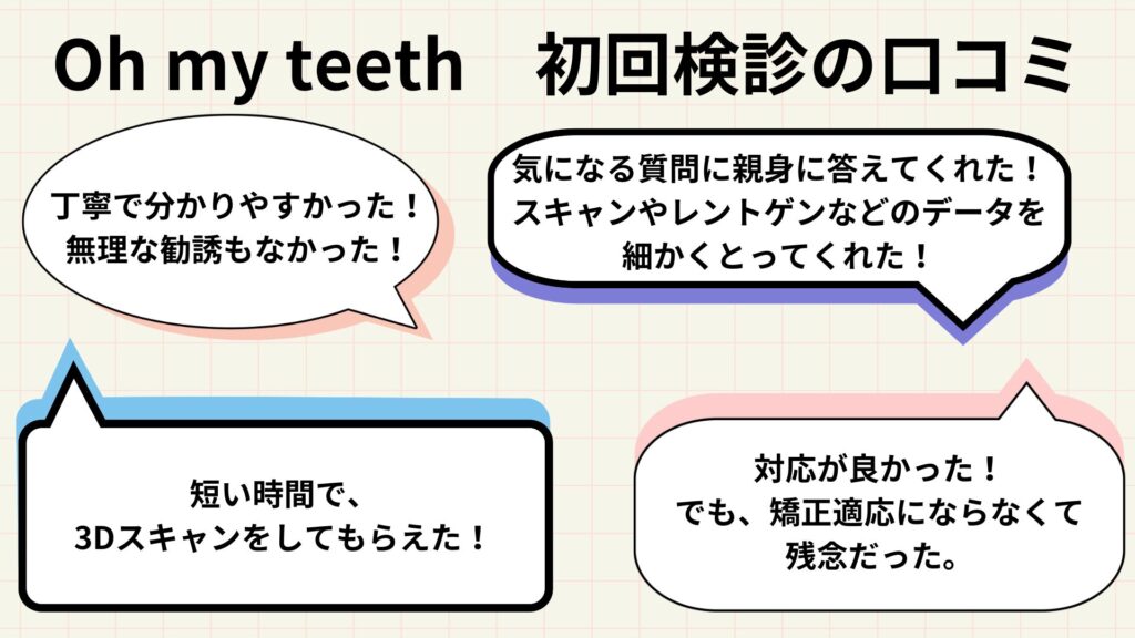 Oh my teethの口コミを調査してきた結果、以下のような声が目立っていました。