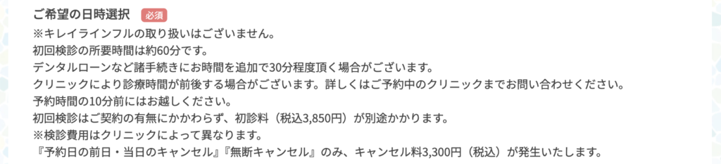 初回検診料は、以下のように予約画面に記載されています。