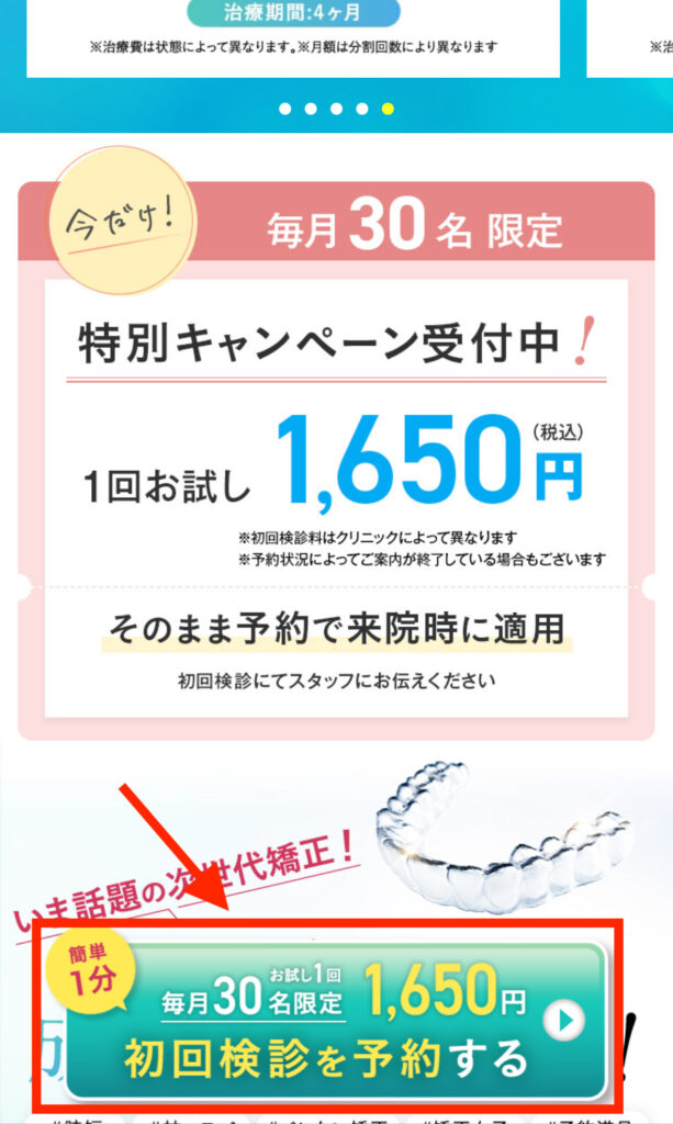 ここでは、ウィ・スマイル矯正で予約をとる手順を実際の画面つきで解説していますので、迷いそうな方はぜひ参考にしながら予約してみてくださいね!